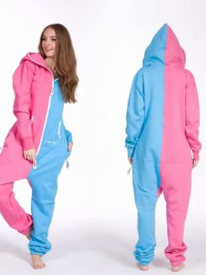 Теплый комбинезон, потрясающее сочетание розового и голубого! Все сезонный комбинезон – унисекс, можно надеть на весеннюю прогулку, веселую вечеринку или спокойно отдыхать в нем дома.